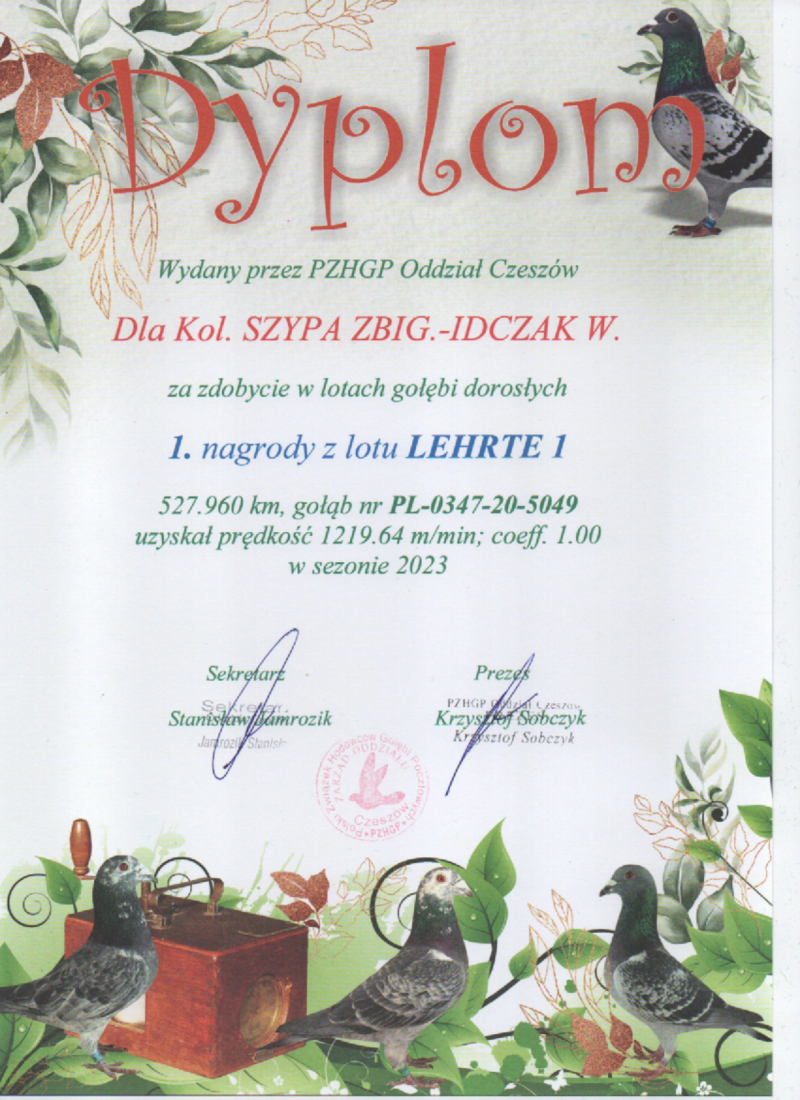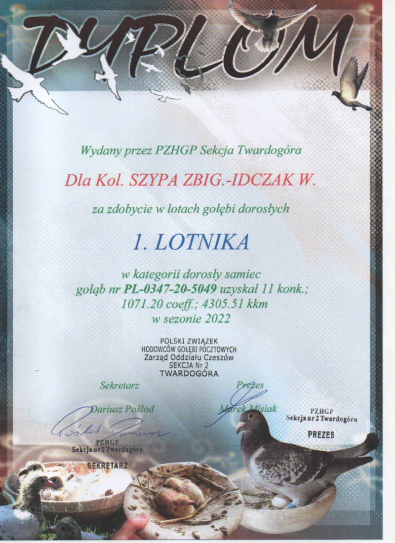Płeć: młody gołąb Hodowca - rasa: TADEUSIAK-IDCZAK Zakończenie: 7.12.2025 godz. 16:22