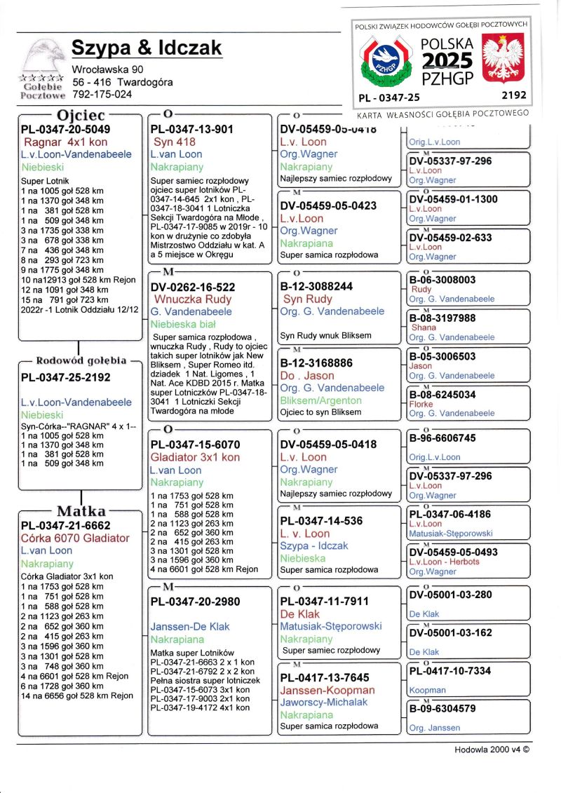 Profesjonalna hodowla z wieloletnim doświadczeniem, posiadająca w swoim stadzie materiał najwyższej światowej klasy. Więcej informacji w załączonych materiałach oraz pod nr tel. 792-175-024 Oferowany gołąb to prawdopodobnie SAMIEC. Płeć pisana orientacyjnie Wysyłka 100 zł