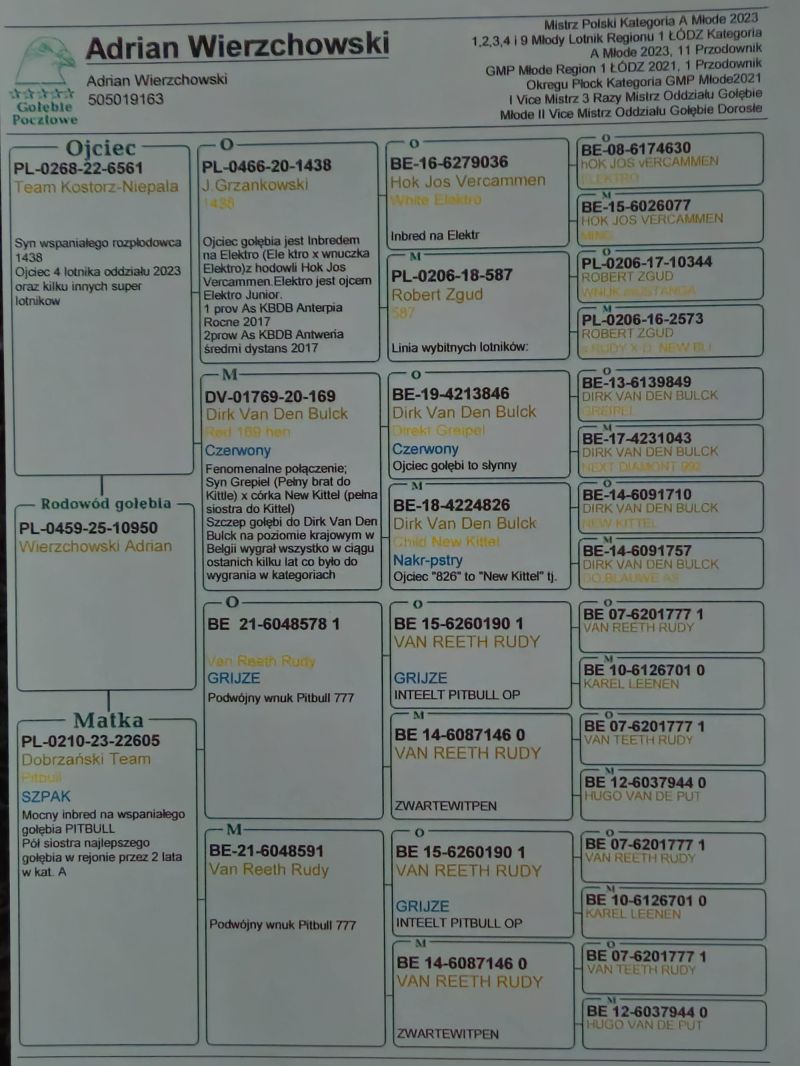 Płeć: młody gołąb Hodowca - rasa: Wierzchowski Adrian Zakończenie: 11.12.2025 godz. 20:22