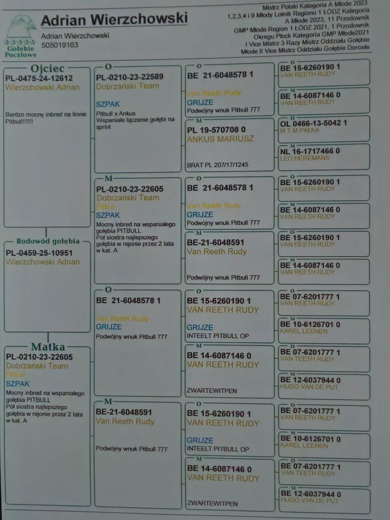Płeć: młody gołąb Hodowca - rasa: Wierzchowski Adrian Zakończenie: 11.12.2025 godz. 20:28
