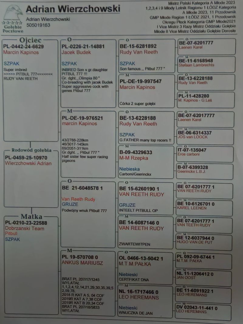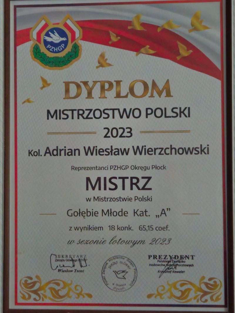 Płeć: młody gołąb Hodowca - rasa: Wierzchowski Adrian Zakończenie: 12.12.2025 godz. 18:24