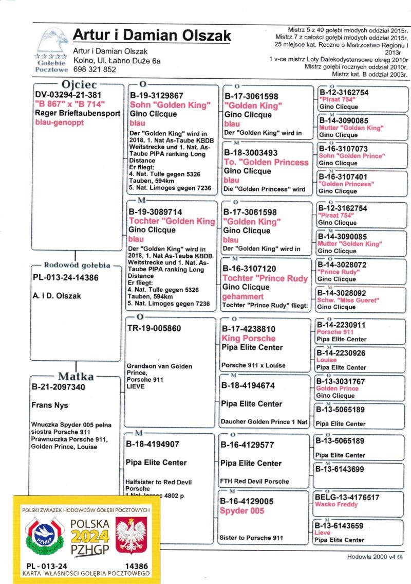*ZMIANA PROFILU HODOWLI* Oryginalny gołąb z hodowli A. i D Olszak. Szczegóły pochodzenia w rodowodzie. Więcej informacji pod nr tel.: 506053616
