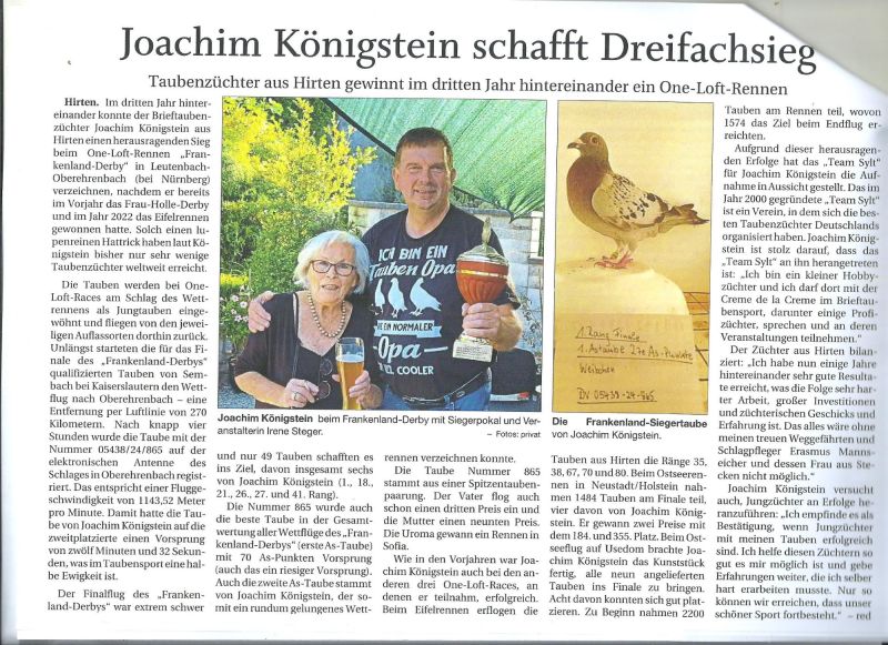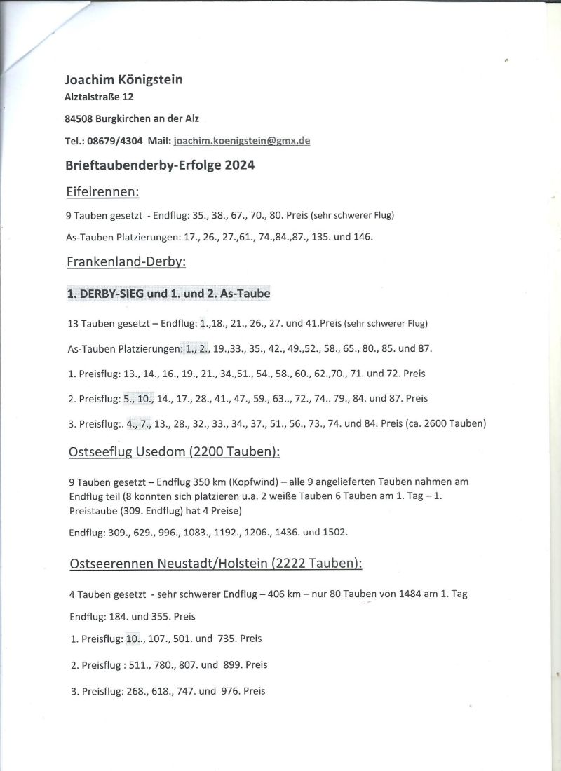 Gołębie ze wspólnego gołębnika UPLAND DERBY Willingen ,szczegóły pochodzenia w rodowodzie.Gołębie brały udział w 11 lotach treningowych ,4 konkursowych i 5 lot Finałowy 344km,Więcej informacji pod nr tel:603 312 976, wyniki dostępne klikając w link ,transport gołębi po wpłacie pieniążków na konto ,gołębie będą dostarczane kurierem 1-3szt 150zł