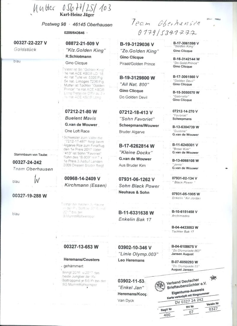 Gołębie ze wspólnego gołębnika UPLAND DERBY Willingen ,szczegóły pochodzenia w rodowodzie.Gołębie brały udział w 11 lotach treningowych ,4 konkursowych i 5 lot Finałowy 344km,Więcej informacji pod nr tel:603 312 976, wyniki dostępne klikając w link ,transport gołębi po wpłacie pieniążków na konto ,gołębie będą dostarczane kurierem 1-3szt 150zł