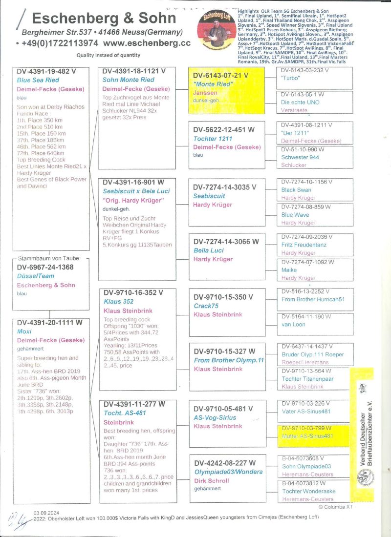 Gołębie ze wspólnego gołębnika UPLAND DERBY Willingen ,szczegóły pochodzenia w rodowodzie.Gołębie brały udział w 11 lotach treningowych ,4 konkursowych i 5 lot Finałowy 344km,Więcej informacji pod nr tel:603 312 976, wyniki dostępne klikając w link ,transport gołębi po wpłacie pieniążków na konto ,gołębie będą dostarczane kurierem 1-3szt 150zł