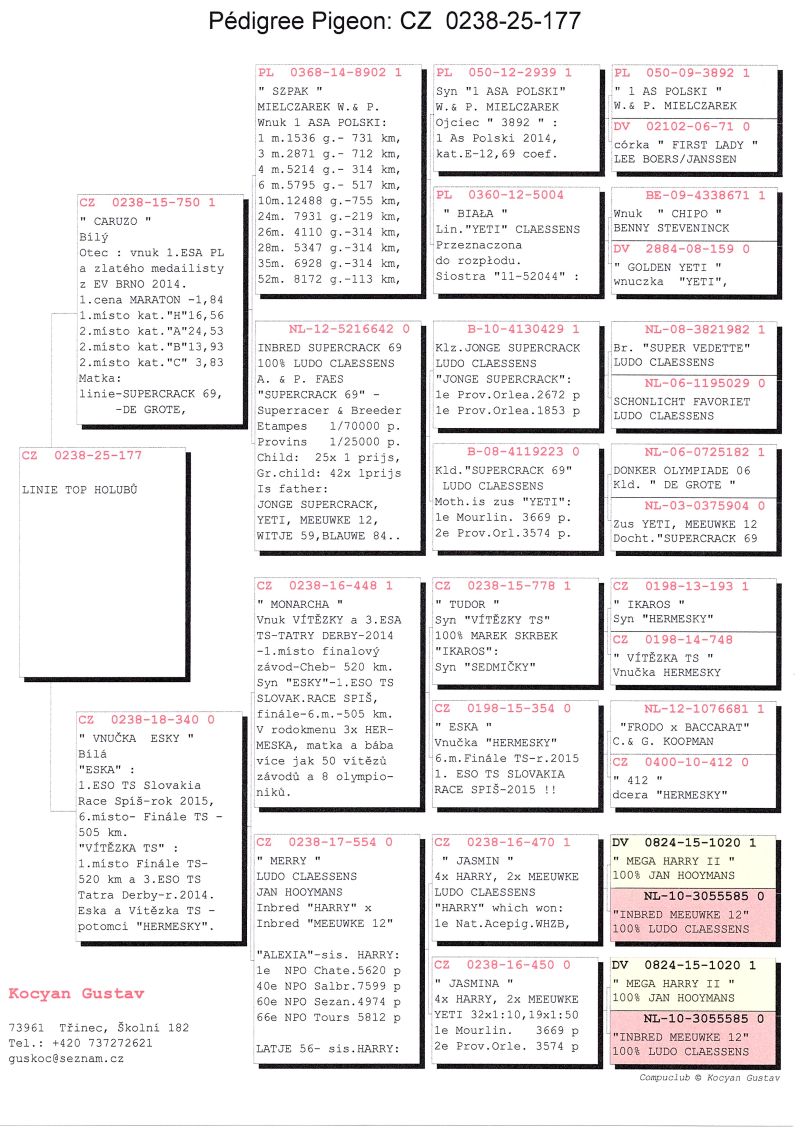 CZ-0238-25-177, Potomek z najlepszych linii danych hodowców - Mielczarek, Skrbek, Hooymans, Claessens.