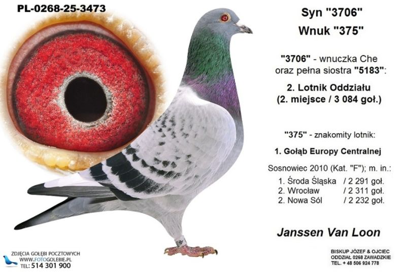 Piękny samiec po wspaniałej lotniczce - 13 samicy Polski. Jego rodzeństwo/dzieci osiąga wspaniałe wyniki lotowe. Poniżej kilka osiągnieć z ostatnich lat: ROBERT SOKOŁOWSKI II WICEMISTRZ POLSKI 2022 kat B 2023 Okręg kat IM - 4 przodownik kat A - 1 przodownik kat B - MISTRZ kat C - 4 przodownik kat M - 40 przodownik kat D - 3 Przodownik kat Roczne - 2 przodownik Region kat B - II V-ce Mistrz kat D - II V-ce Misrrz Intermistrzostwo - 20 przodownik kat. A - 8 przodownik kat C - 30 przodownik 2022 II WICEMISTRZ POLSKI 2022 kat B - Kategoria A - 162,93 coeff. - Intermistrzostwo 2022 - 7 Przodownik - 337,981 coeff. Ogólnopolska Wystawę Gołębi Pocztowych Katowice 2023. - Samica PL-0476-20-5044 - Kat. A - 39,68 coeff. - Samiec PL-0476-22-5971 - Kat. F - 14,68 coeff. 2021 Mistrzostwo Polski 2021 *** GMP - 47 Przodownik *** Kat A - 66 Przodownik *** DERBY - 28 Przodownik *** Mlode - 56 Przodownik **** 4 golębie byly na wystawie ogólnopolskiej w Katowicach w tym ****11 goląb w Polsce w G- 16,182 *** 14 goląb w Polsce w F- 3,705 coeff**