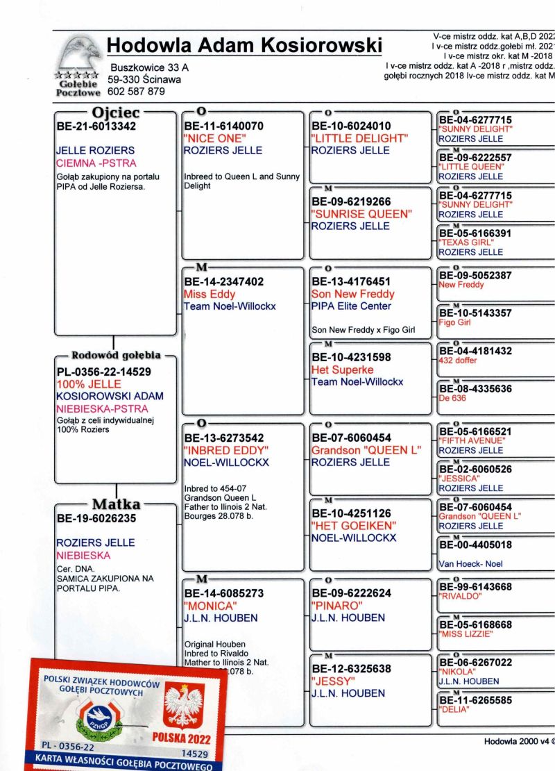 Piękna samiczka z gołębi od Jelle Roziersa. Gołąb zdrowy,zaszczepiony,odrobaczony,płodny.Sprzedaję tylko i wyłącznie z powodu nadwyżki w rozpłodzie.Więcej info pod nr tel. 602 587 879.Wpłata na konto.Kurier 150 zł