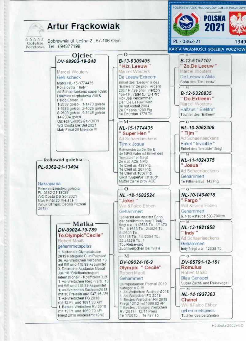 PL-0362-21-13494 oryg. Artur Frąckowiak - wnuk OLYMPIC Cecile