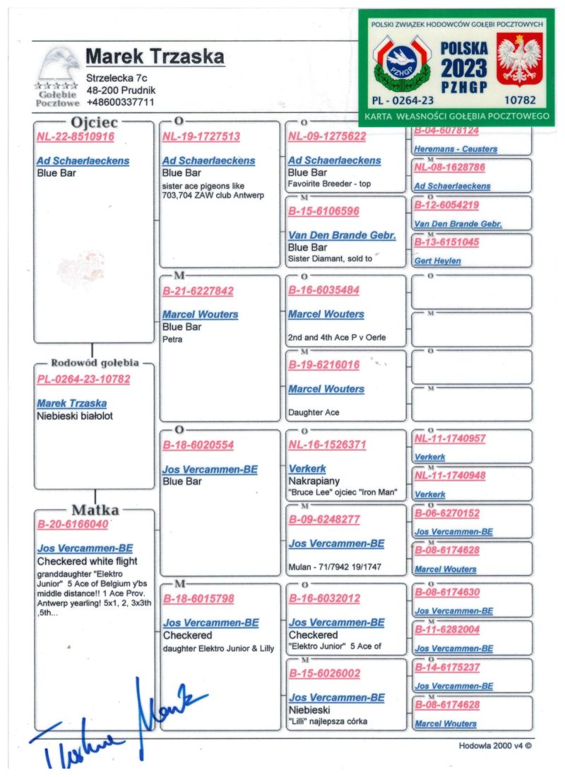 Oryginalny gołąb z hodowli Marka Trzaski.