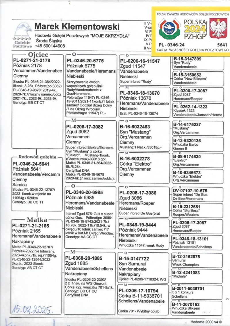 Płeć: młody gołąb Hodowca - rasa: GM Zakończenie: 13.12.2025 godz. 20:02