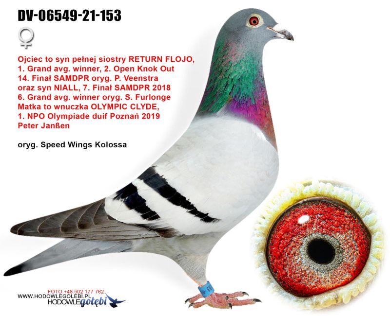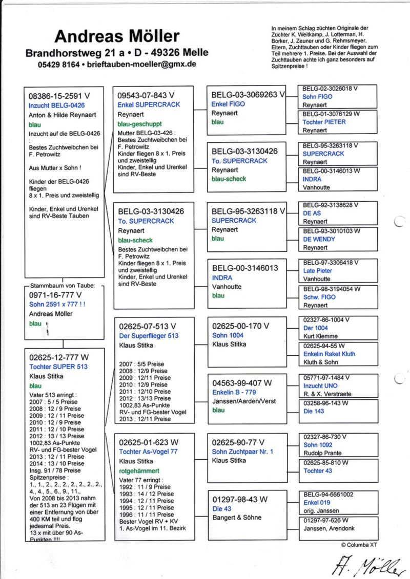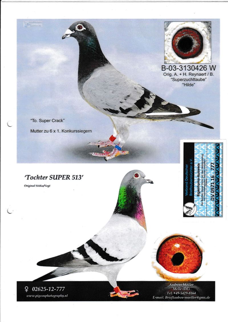 Oryginalny gołąb z hodowli Andreas Möller. Więcej informacji w rodowodzie oraz pod numerem telefonu: +49 173 3549283