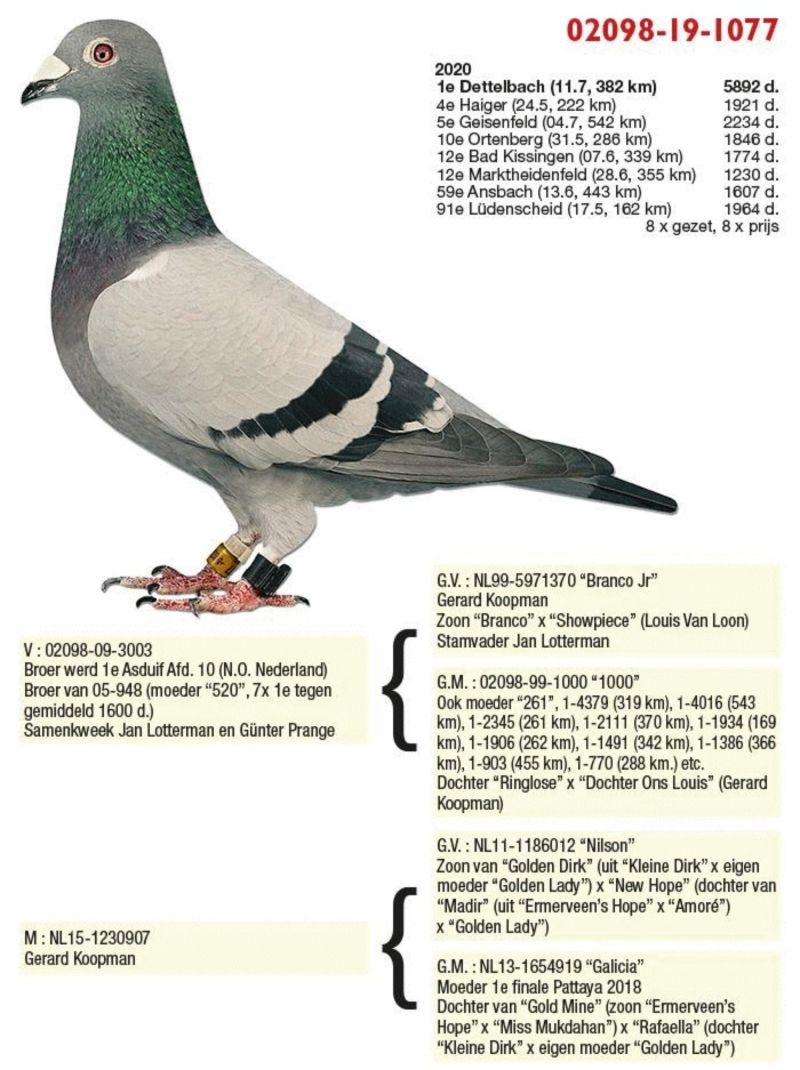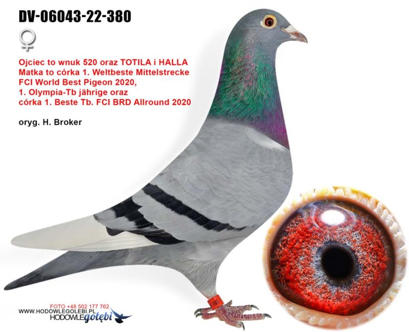 Oryginalny gołąb z hodowli H. Broker. Więcej informacji w rodowodzie oraz pod numerem telefonu: +49 173 3549283 Mój wynik Algarve 2025 Finał: 137, 180, 548, 774, 1856 na 3334 gołębie