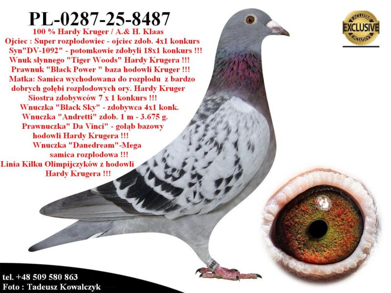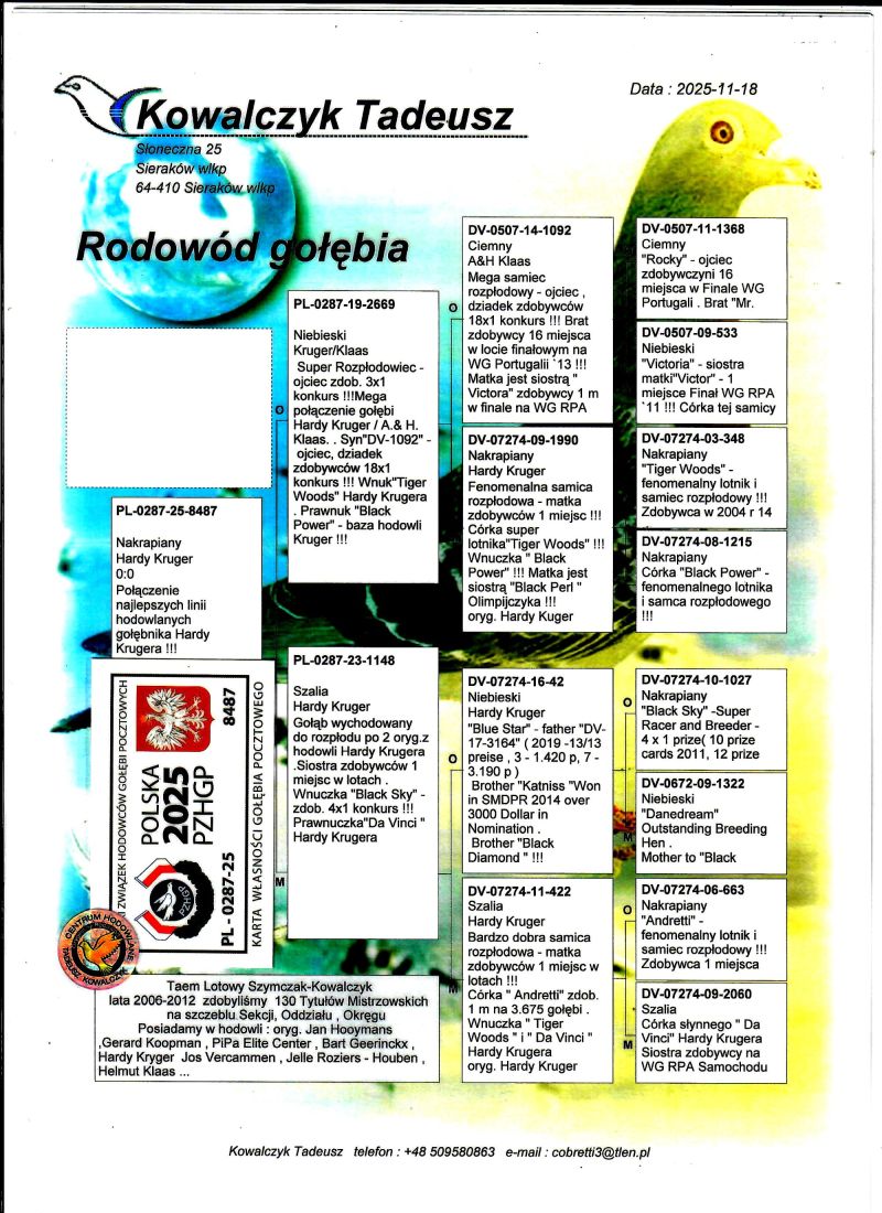 AUKCJA PROMOCYJNA ROCZNIKA 2025 (Cena obowiązuje wyłącznie na tej aukcji) Profesjonalna hodowla z wieloletnim doświadczeniem, posiadająca w swoim stadzie materiał najwyższej światowej klasy, wywodzący się od takich hodowców jak: Jan Hooymans, Gerard Koopman, Mike Ganus, Tjeerd & Jouke Elzinga, Gino Clicque, Jos Vercammen, Jelle Roziers, Bart Geerinckx, Batenburg – v/d Merwe, Altmiks – Pigeons, Jo & Florian Hendriks, Kornelis Winner Loft – linia „Romario”, W & F Ebben, Bert Braspenning, Dirk van den Bulck, Peter v/d Merwe, Jan van de Pasch, Van Elsacker-Jepsen, Roger Desmet – Matthijs, Arie Dijkstra, Leo Heremans, Pieter Veenstra, Gaby Vandenabeele, Karl-Heinz Wichert, Hardy Kruger, Helmut & Alfons Klaas, Gebr. Janssen. Najwyższej klasy materiał hodowlany – najlepsze linie danych Hodowców. Wszystkie wylicytowane gołębie będą dostarczane firmą kurierską.
