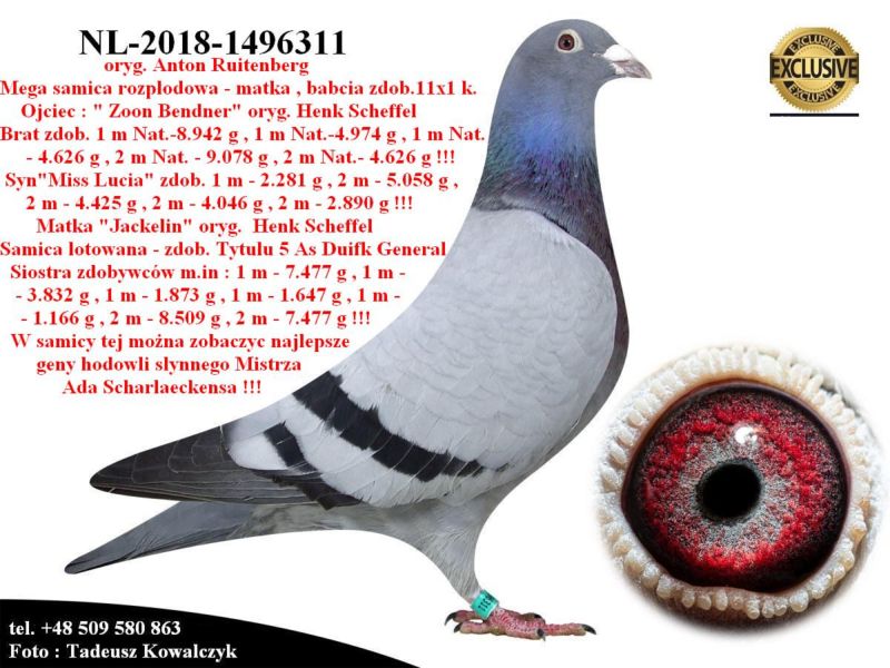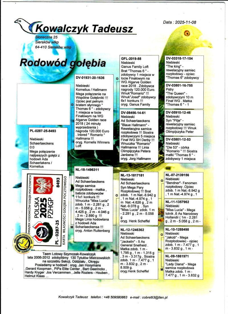 PL-0287-25-8493 Potomek najlepszych gołębi z hodowli Kornelius / Ad Schearlaeckens