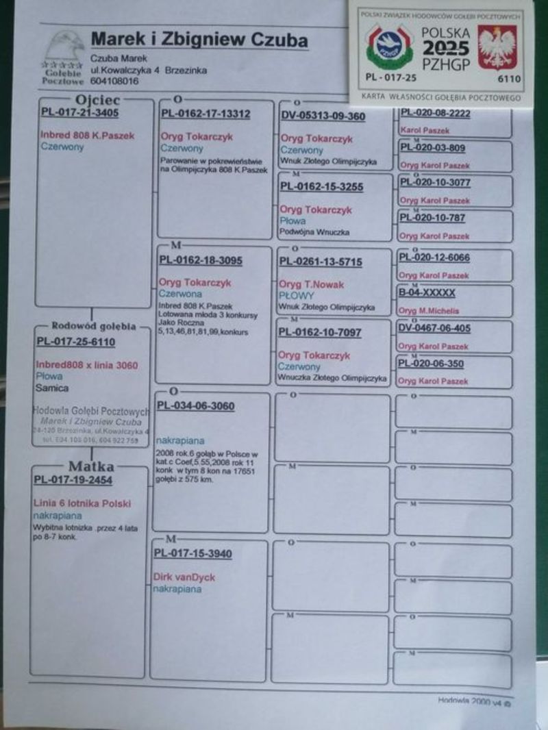 Płeć: samica Hodowca - rasa: Oryg Czuba Marek Zakończenie: 12.12.2025 godz. 21:56