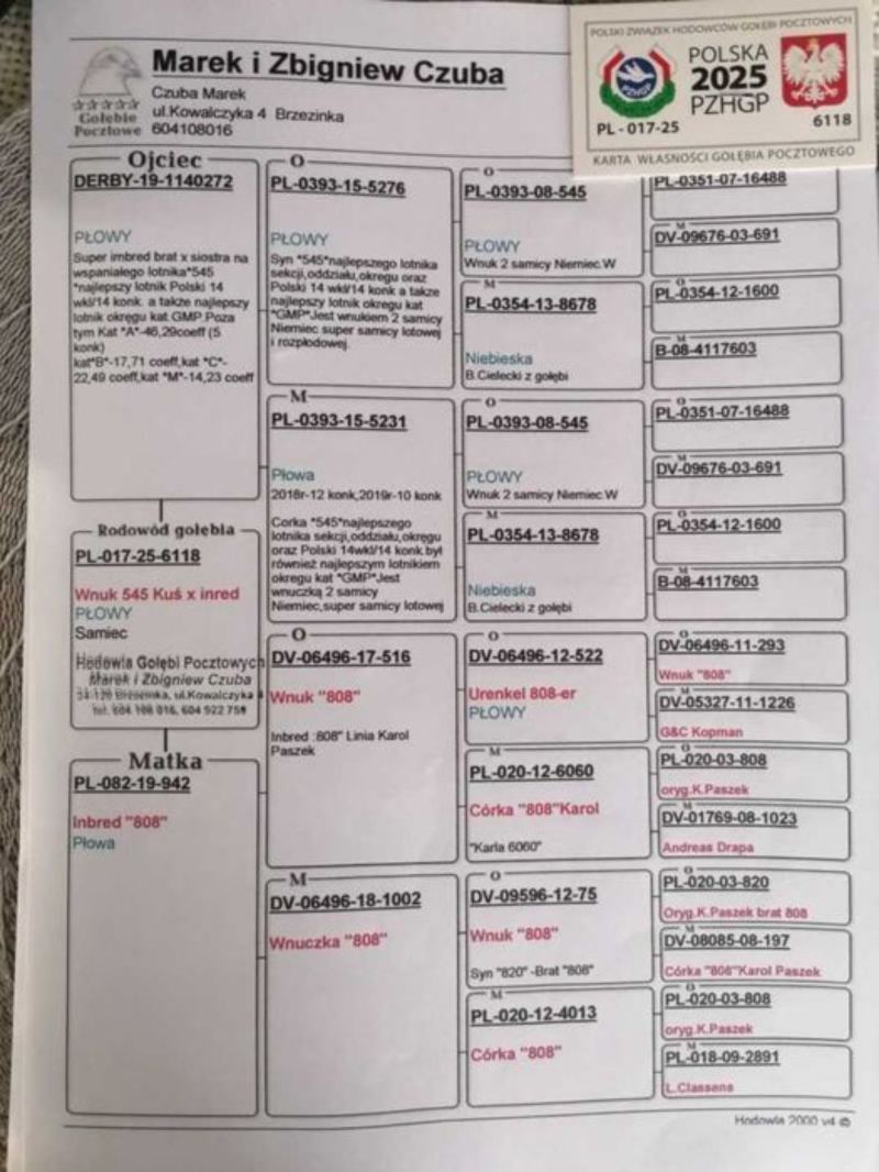 Płeć: samiec Hodowca - rasa: Oryg Czuba Marek Zakończenie: 12.12.2025 godz. 22:00