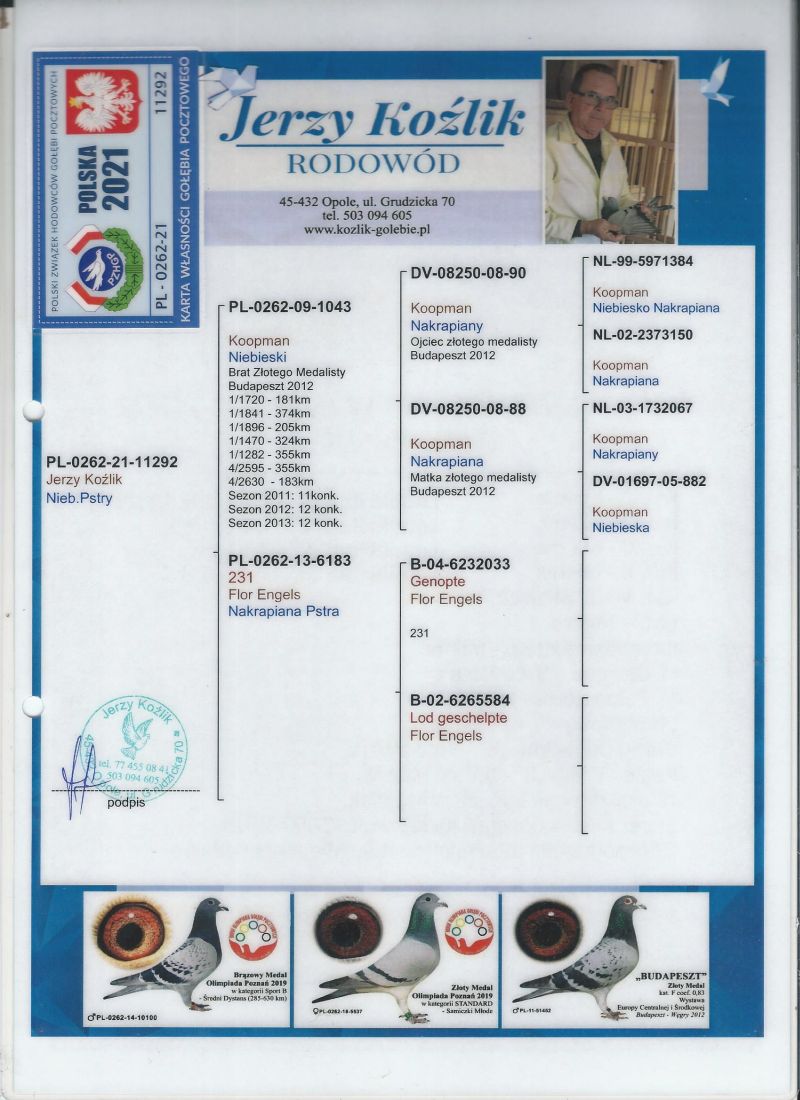 Oryginalny golab z hodowli Jerzego Koźlika. syn kapitalnego lotnika i najlepszego brata Budapeszta- złotego medalisty w kat F.