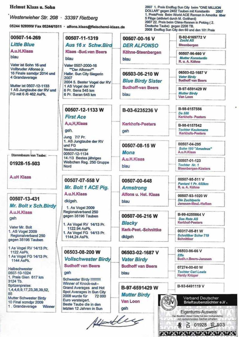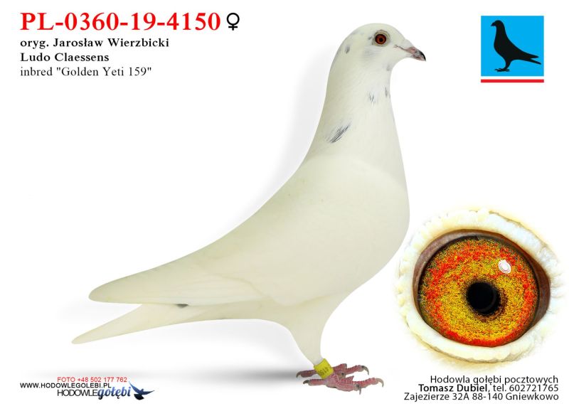 Prawdopodobnie samiec. Białe od kolegi Jarka Wierzbickiego to piękne twarde gołębie. Super latają w domu i na WG. ****************************************** Moje stado opiera się na ptakach które w latach 2012-2016 pozwoliły mi wygrywać w oddziale i okręgu w różnych kategoriach, lecąc w 2 różnych oddziałach 036 i 0394. Najważniejsze osiągnięcia to Mistrz okręgu kat. C 49 miejsce w Polsce, II vice Mistrz okręgu kat. B i młode, Super Mistrz Oddziału. Wszystkie wyniki dokładnie opisane na końcu aukcji. Do lotowania wróciłem „na chwilę” w 2021 r. na nowym miejscu zamieszkania w bardzo ciężkim sezonie 3 x vice Mistrz Oddziału gołębi młodych. 2,5,11,16,19,22,23,27,28,40 pozycje w klasyfikacji lotników. 3 x Mistrz sekcji oraz XIII przodownika okręgu Bydgoszcz. Zacząłem też lotowanie na WG wysyłając po kilka sztuk na sezon. 2021 – konkursy na finałach na WG Krakus i Super Gołąb, 2022 - 14 miejsce Extra Finał 518 km WG Super Gołąb, 2023 – 11 miejsce Finał 502 km WG Bojano. 2024 - 4 miejsce Półfinał WG Tatry, WG Bojano 4 miejsce lot konkursowy, 34 miejsce Półfinał, 17 miejsce Drużyna, 54, 78, 79, 81 lotnik. Po moich gołębiach w 2024 ptaki wylatały: po pełnej parze 68 miejsce Finał Super Gołąb, po samcu 8 miejsce Extra Finał WG Warmia, po samicy 16 miejsce Finał WG Roztocze, po samcu 3 AS długi dystans i 7 miejsce Extra Finał MWG Giewont. 2025 31 lotnik Derby Carmelo Yupi, 43 miejsce Extra Finał WG Tatry, 12 miejsce Finał WG Carpatia, 40 miejsce Finał WG Krakus (56 seria na 849 hodowców 2/2 w konkursie z 3 wysłanych ptaków), po samicy ode mnie 24 miejsce Finał Corabia One Loft Race. ********************** Wszystkie gołębie przyjęły komplet szczepień(Pharmavac, salmovir + ospa). Więcej informacji w rodowodach, zapraszam też do kontaktu telefonicznego, mailowego bądź WhatsApp. ********************* TRANSPORT, ptaki zostaną dostarczone transportem prywatnym w połowie grudnia, cena 1-2 szt. 100 zł, 3-6 szt. 150 zł, 7 i więcej 200 zł. Koszty transportu płatne kierowcy, za gołębie kierowcy bądź na konto, jak wygodniej. Istnieje również możliwość wcześniejszej wysyłki kurierskiej w cenie 150 zł do 6 szt. Zapraszam również do odbioru osobistego.