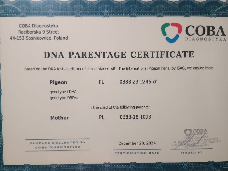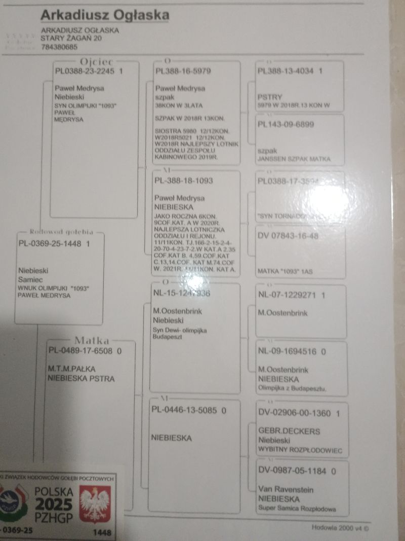 Oryginalny gołąb z hodowli Ogłaska Arkadiusz. Szczegóły pochodzenia w rodowodzie. Więcej informacji pod nr tel.784380685