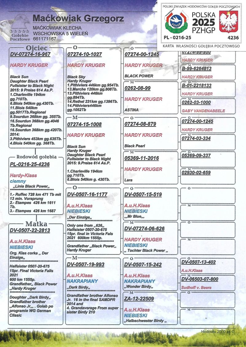 PL-0216-25-4236 Hardy Kroger linia Black Power x Klaas matka lotowana na WG