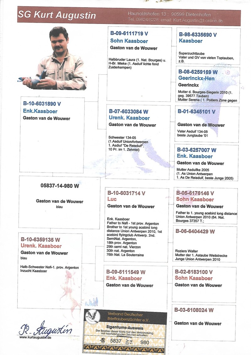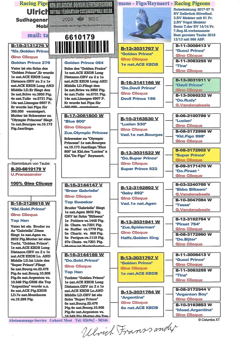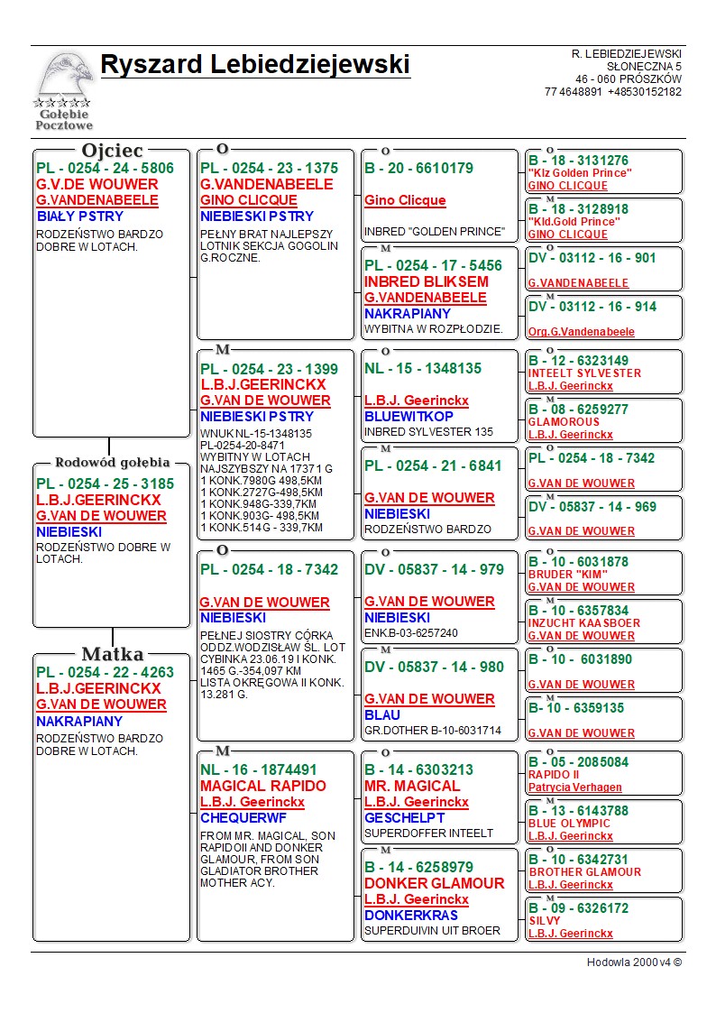 *prawdopodobnie samica* Oryginalny gołąb z hodowli Ryszard Lebiedziejewskiego. Szczegóły pochodzenia w rodowodzie. Więcej informacji pod nr tel.: 530 152 182. **Gołębie po kuracjach przygotowane do sezonu. **Transport gołębi prywatnym kurierem 130 zł do 3 szt. od 4szt do 6szt 150zł.