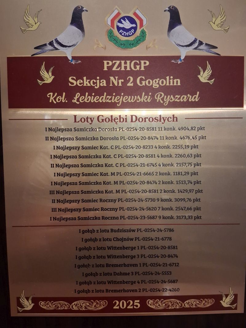 Płeć: młody gołąb Hodowca - rasa: oryg. Ryszard Lebiedziejewski Zakończenie: 13.12.2025 godz. 21:54