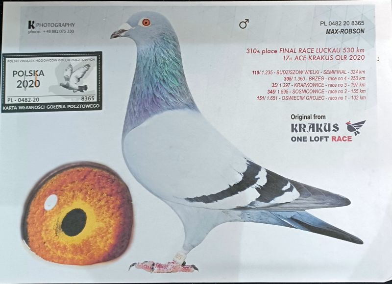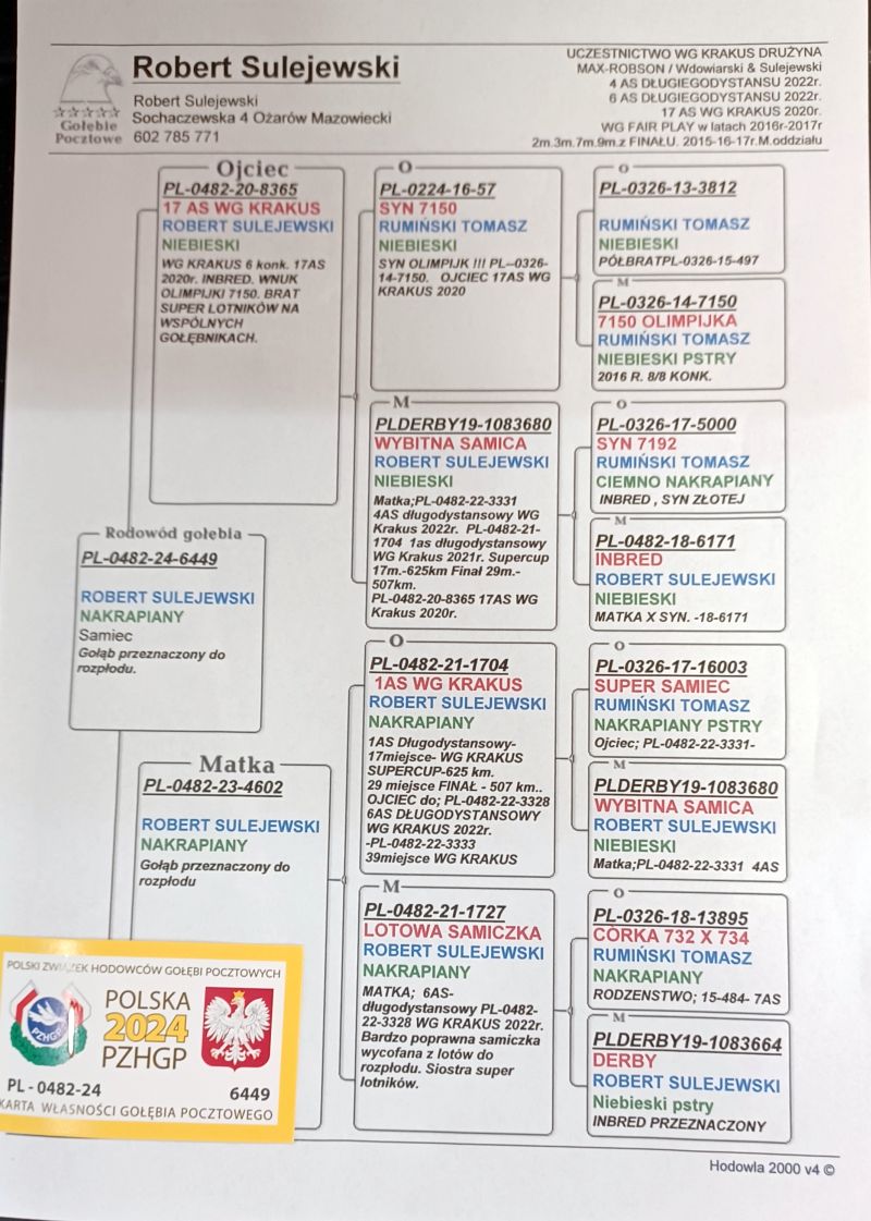 Oryginalny gołąb z hodowli Roberta Sulejewskiego. Syn 17 Asa oraz wnuczek 1 Asa WG Krakus. Gołąb zaszczepiony, po kuracjach. Odbiór osobisty - wysyłka lub wystawa ogólnopolska. Rezygnacja z PZHGP. Więcej informacji pod numerem telefonu 602 785 771