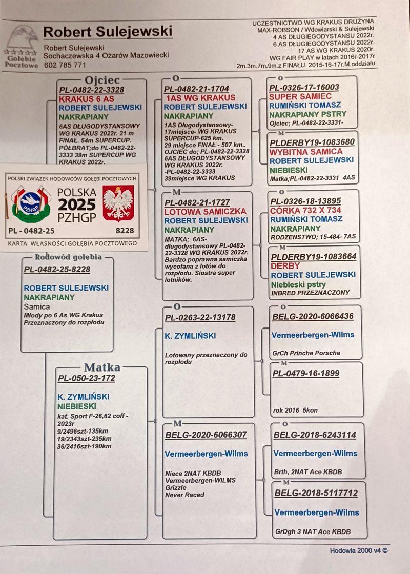 Oryginalny gołąb z hodowli Roberta Sulejewskiego. Ojciec 6 As posiada certyfikat DNA Gołąb zaszczepiony, po kuracjach. Odbiór osobisty - wysyłka lub wystawa ogólnopolska. Rezygnacja z PZHGP. Więcej informacji pod numerem telefonu 602 785 771
