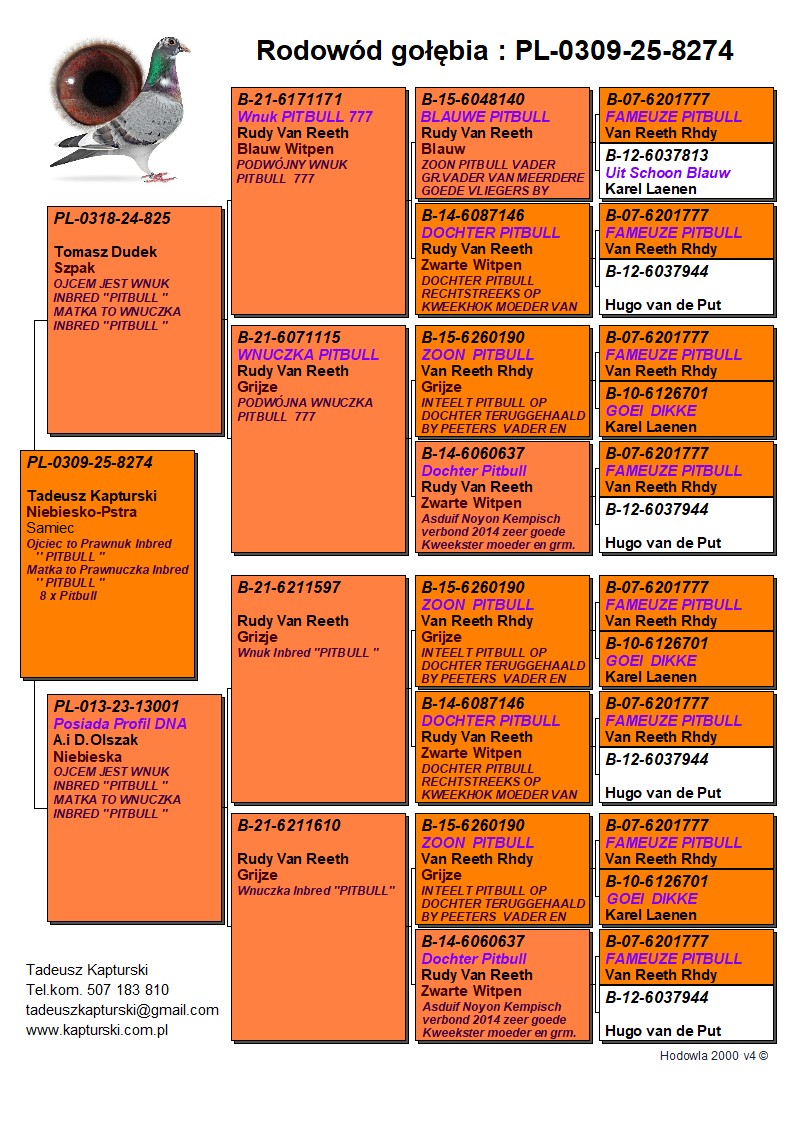 Oryginalny gołąb z hodowli Tadeusza Kapturskiego. Na życzenie certyfikat DNA. Szczegóły pochodzenia w rodowodzie. Więcej informacji pod nr tel.: 507183810 *transport kurier 165 zł