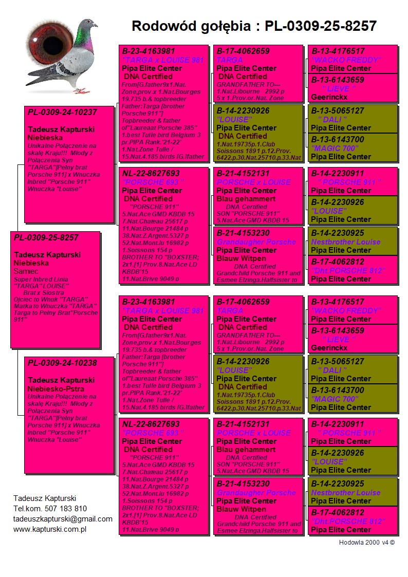 Oryginalny gołąb z hodowli Tadeusza Kapturskiego. Na życzenie certyfikat DNA. Szczegóły pochodzenia w rodowodzie. Więcej informacji pod nr tel.: 507183810 *transport kurier 165 zł