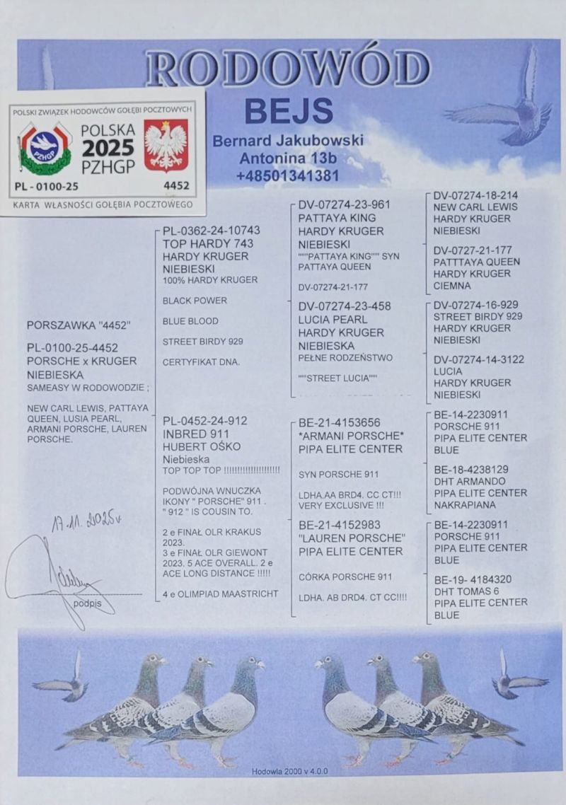 Płeć: młody gołąb Hodowca - rasa: oryg. Bernard Jakubowski Zakończenie: 14.12.2025 godz. 18:44