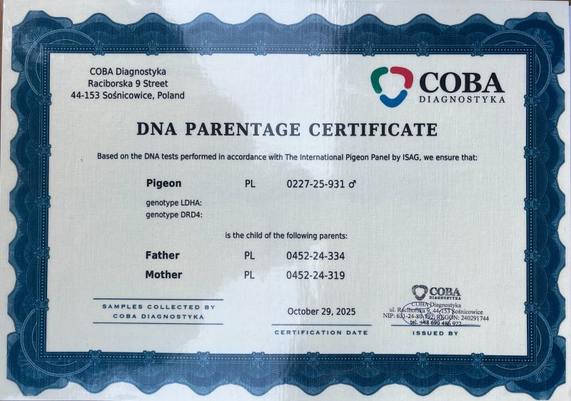 Płeć: samiec Hodowca - rasa: oryg. Bernard Jakubowski Zakończenie: 14.12.2025 godz. 18:14