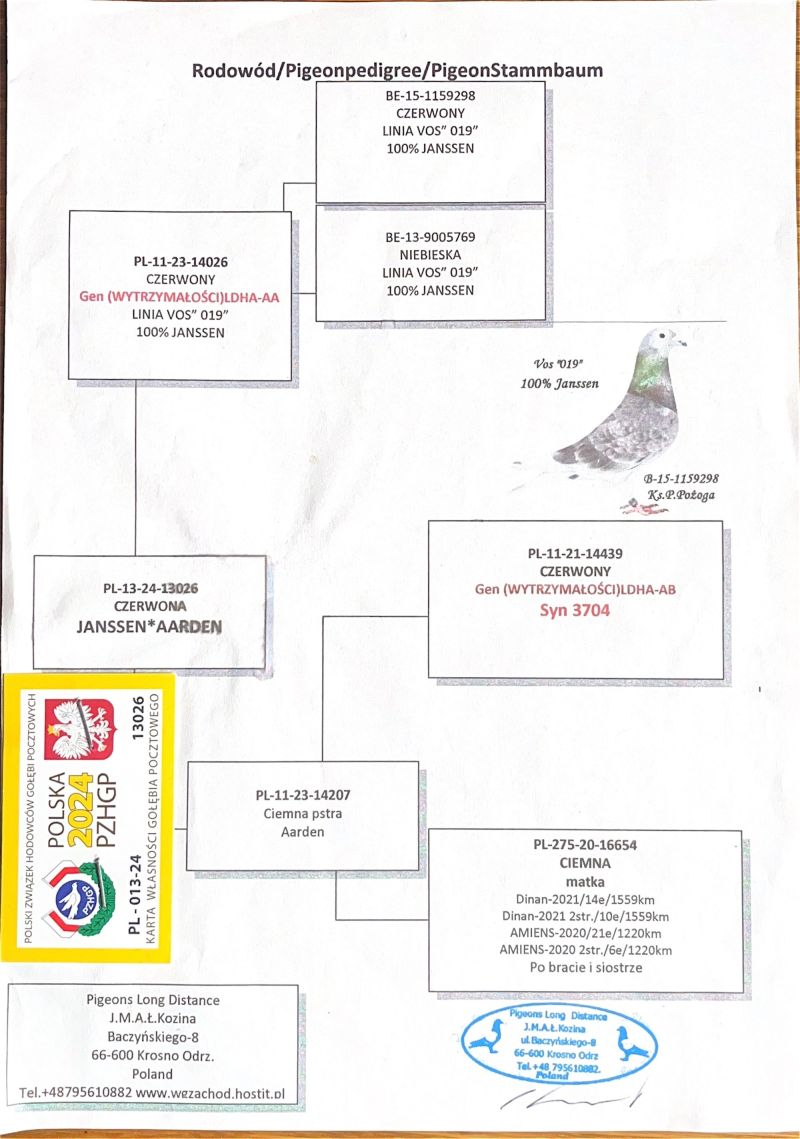 Oryginalny gołąb z hodowli TJ.M.A.Ł.Kozina. Więcej szczegółów w rodowodzie oraz pod numerem telefonu: 506 296 144