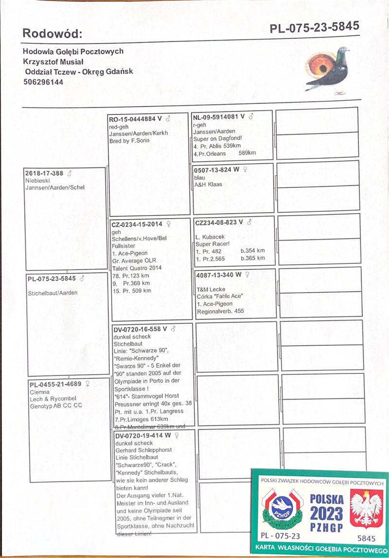 Oryginalny gołąb z hodowli Krzysztofa Musiała. Gołębie przelotowane. Rodzeństwo brało udział w lotach na wspólnych gołębnikach. Więcej szczegółów w rodowodzie oraz pod numerem telefonu: 506 296 144