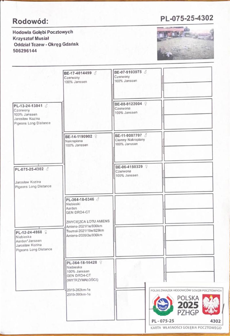 Płeć: młody gołąb Hodowca - rasa: K.Musiał Zakończenie: 16.12.2025 godz. 19:00