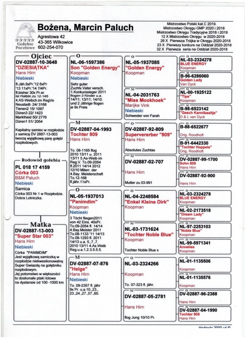 Oryginalny gołąb z hodowli Bożena, Marcin Paluch. Możliwość transportu kurierem. Więcej informacji w rodowodzie oraz pod numerem telefonu. 691 671 769