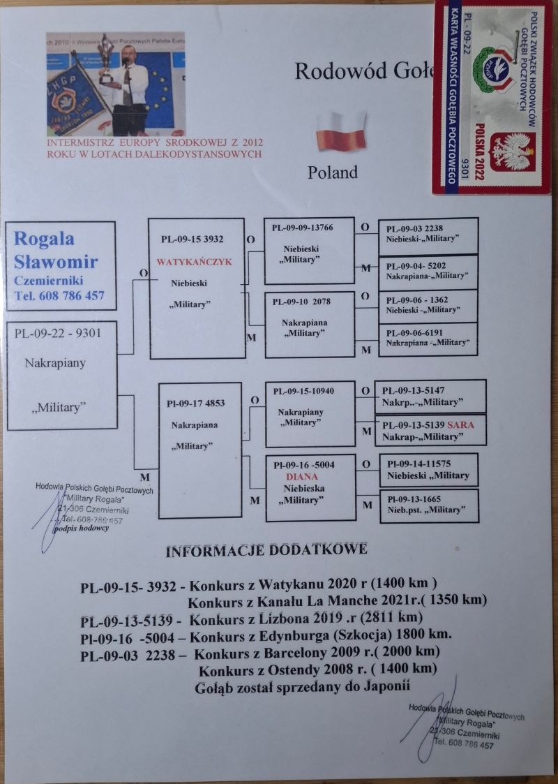 Oryginalny gołąb z hodowli Sławomira Rogali sprzedawany z gołębnika rozpłodowego Andrzeja Zycha. Szczegóły pochodzenia zamieszczone w rodowodzie. Więcej informacji pod numerem telefonu: 721 619 412