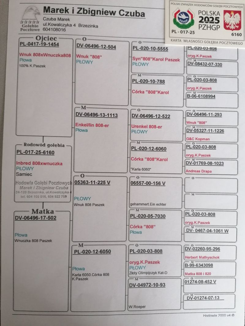Płeć: samiec Hodowca - rasa: Oryg Czuba Marek Zakończenie: 15.12.2025 godz. 17:52
