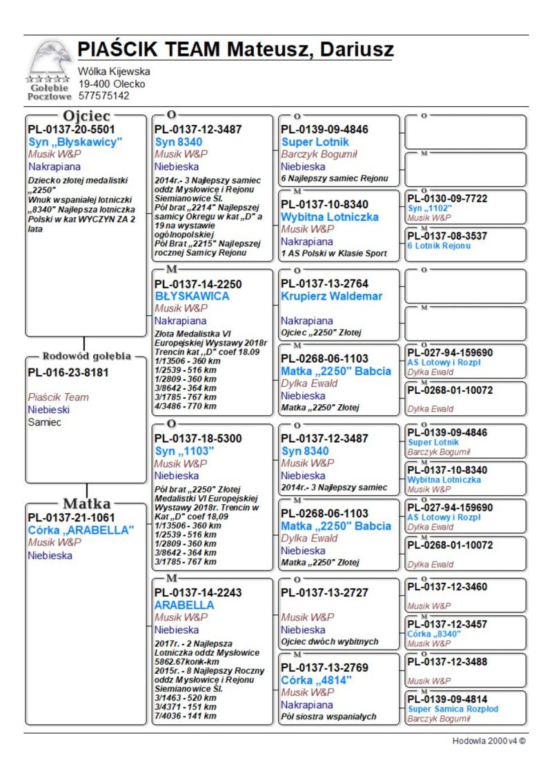 WNUK SUPER LOTNICZKI "ARABELLA" - 2 LOTNICZKA ODDZIAŁU MYSŁOWICE 2017R M.IN.: 3, 3, 7, 8, 12.. |WNUK ZŁOTEJ MEDALISTKI "2250" Trencin kat ,,D" coef 18.09