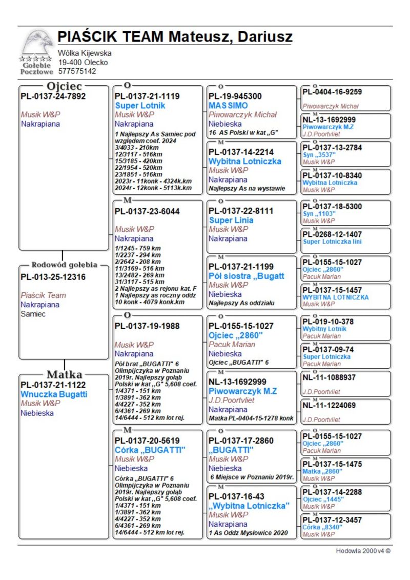 WNUK SUPER LOTNIKA "1119" - NAJLEPSZY SAMIEC ODDZIAŁU 2024 (COEFF.) - 12KONK. / NAJLEPSZY SAMIEC ODDZIAŁU 2025 (COEFF.) / 3 LATA - 33KONK.|DZIECKO SAMICZKI "1122" - JEST ONA WNUCZKĄ OLIMPIJCZYKA "BUGATTI" - KAT. SPORT G - 5,62COEFF. ZDOBYŁ M.IN.: 1, 1, 4, 6, 14...|Wiecej informacji o gołębiu pod nr tel.:577575142 Szczegóły pochodzenia gołębia w rodowodzie
