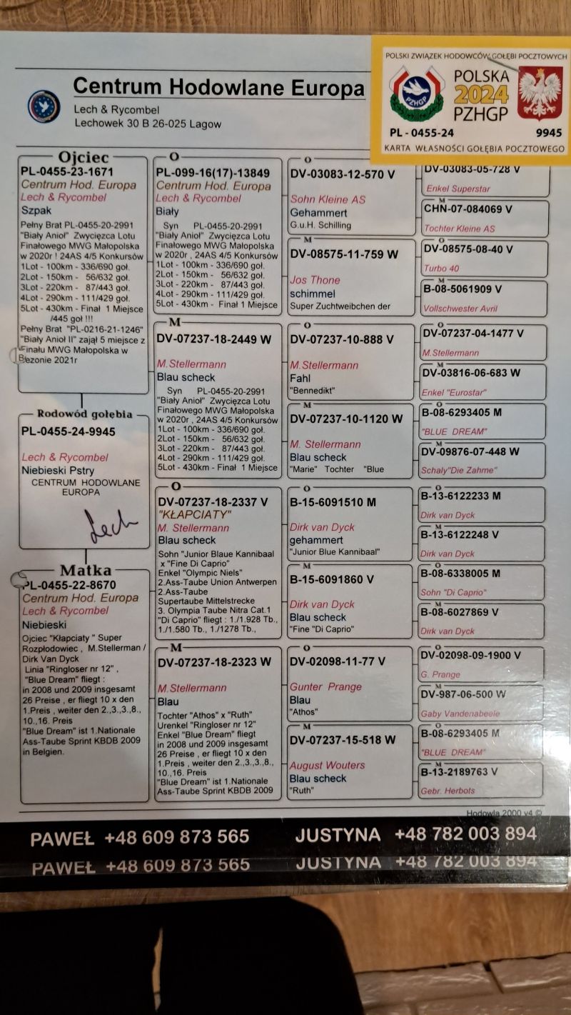 PL-0455-24-9945 oryg. C.H.EUROPA Pełny brat "Biały Anioł" x M.Stellermann "KŁAPCIATY" Dirk van Dyck