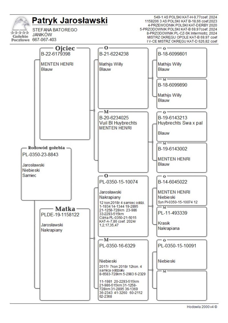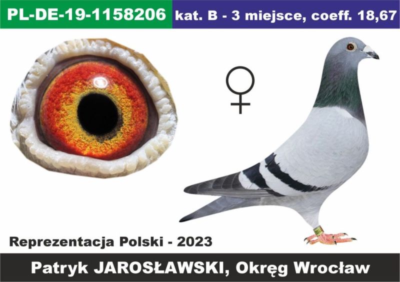 Oryg. Patryk Jarosławski. Szczegóły pochodzenia w rodowodzie. Więcej informacji o gołębiu pod nr tel. 667 067 403