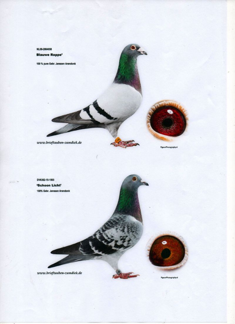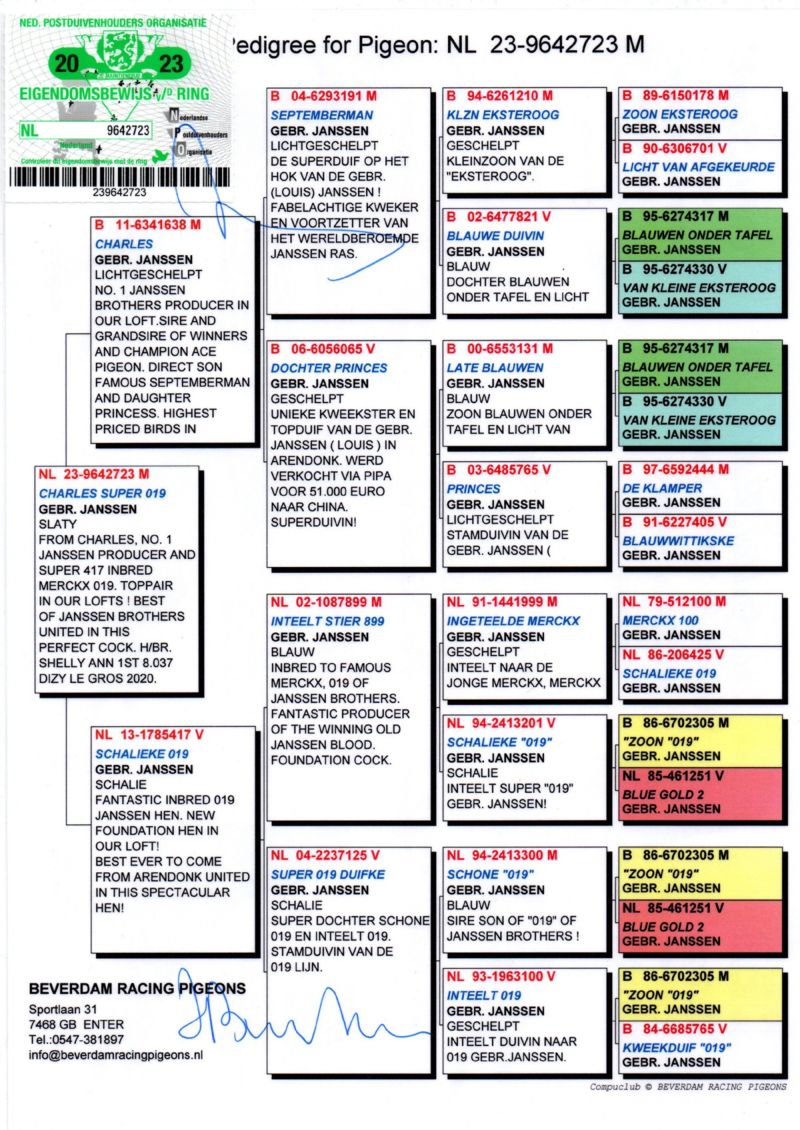 Szczegóły pochodzenia w rodowodzie oraz na opisanym zdjęciu gołębia.