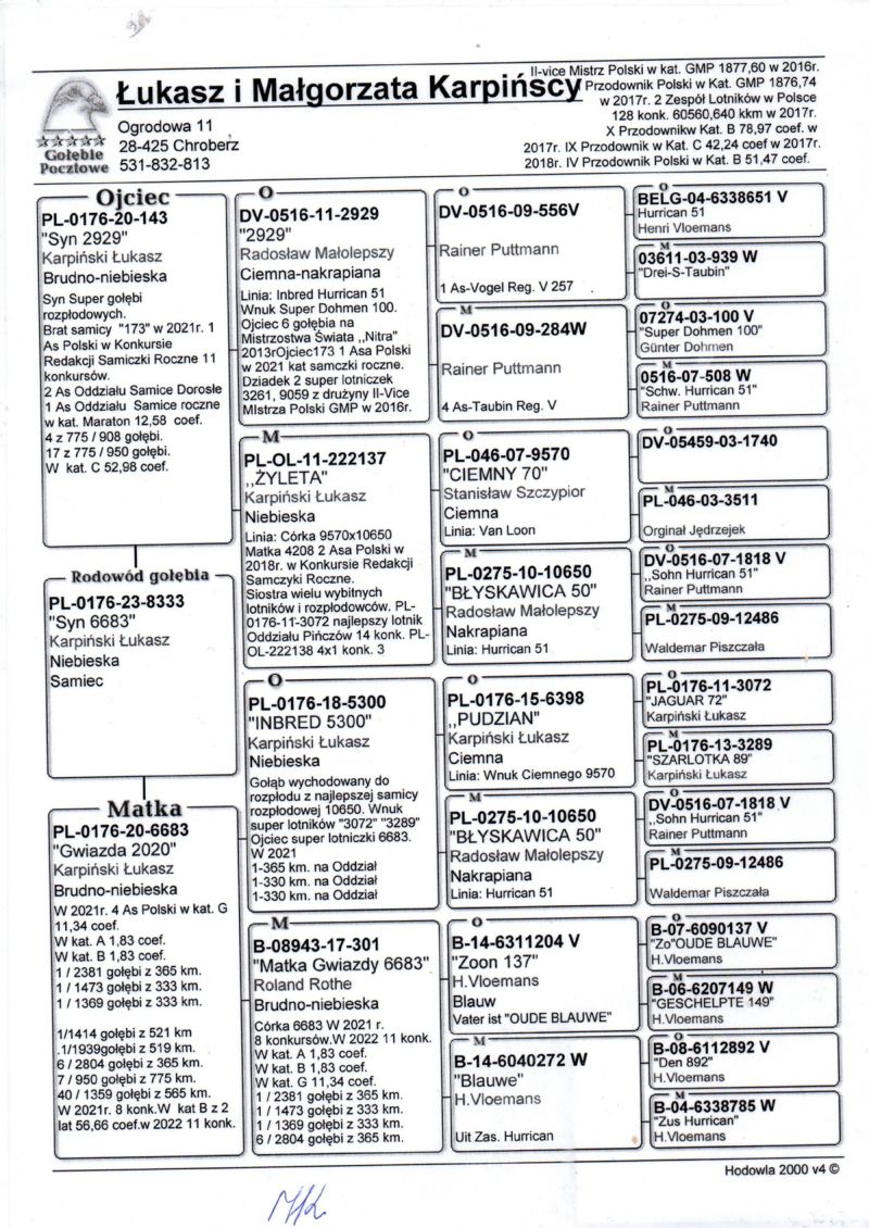 Szczegóły pochodzenia w rodowodzie oraz na opisanym zdjęciu gołębia.