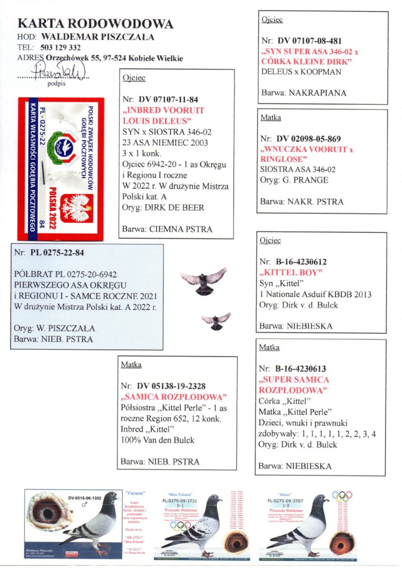 Szczegóły pochodzenia w rodowodzie oraz na opisanym zdjęciu gołębia.
