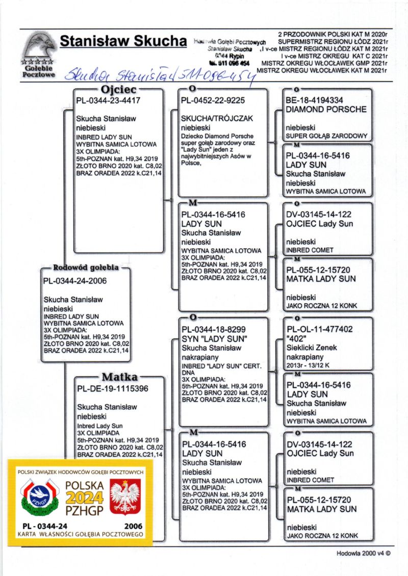PL-0344-24-2006 - oryg. Stanisław Skucha - Wnuczka Inbred LADY SUN - 3 x OLIMPIADA