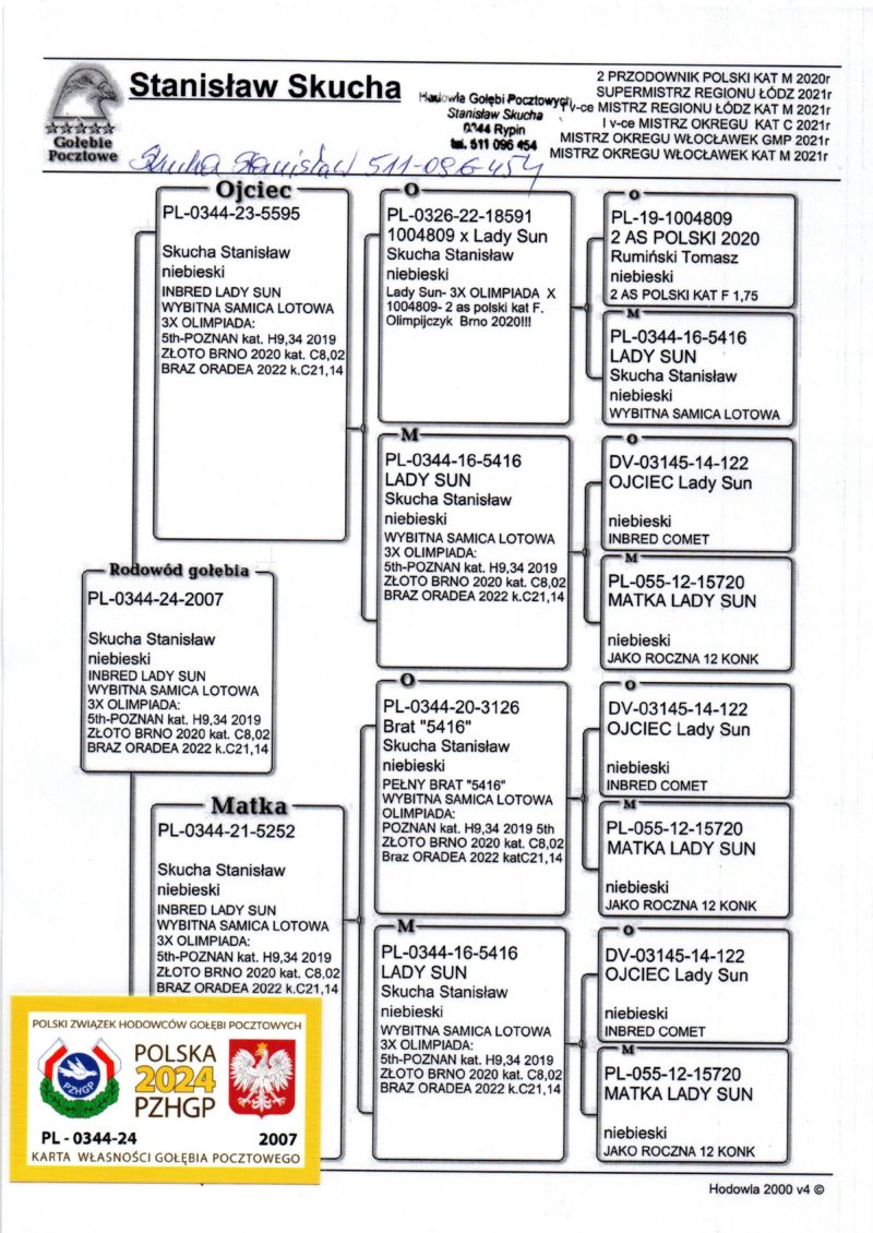 PL-0344-24-2007 - oryg. Stanisław Skucha - Wnuk Inbred LADY SUN - 3 x OLIMPIADA