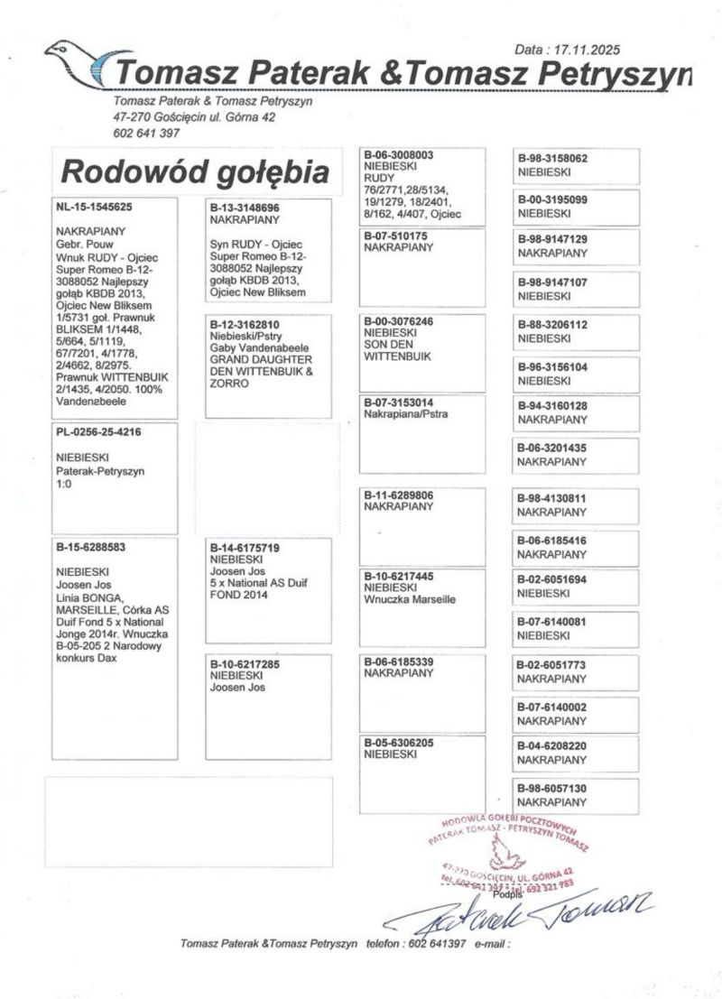 Płeć: samiec Hodowca - rasa: oryg. Tomasz Paterak & Tomasz Petryszyn Zakończenie: 18.12.2025 godz. 20:14