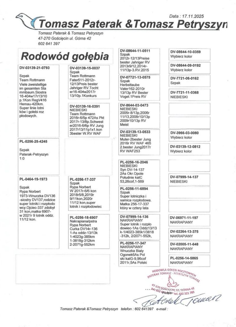 Płeć: samiec Hodowca - rasa: oryg. Tomasz Paterak & Tomasz Petryszyn Zakończenie: 18.12.2025 godz. 20:16